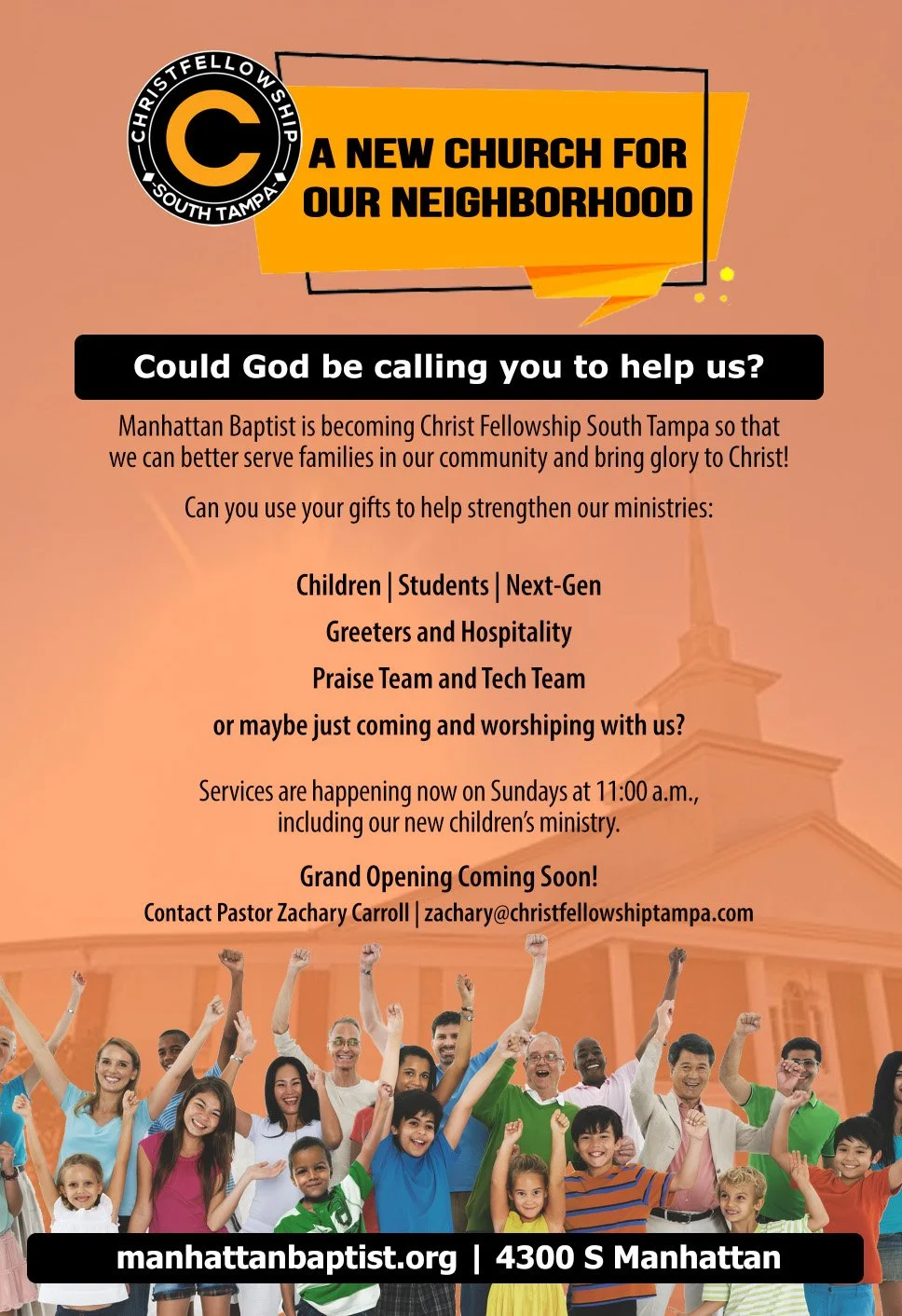 Does being part of a brand new church plant in South Tampa excite you? Reach out to us, we would love to connect with you!